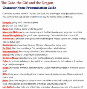 Curious how the names in the book should be pronounced? You can hear them HERE with the Character Pronunciation Guide :